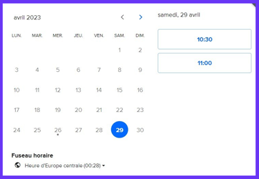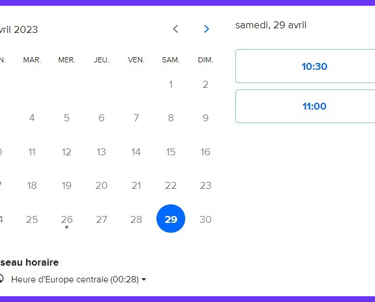 Réservez votre créneau en sélectionnant la date et l'heure qui vous conviennent.